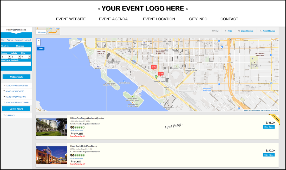 EXAMPLE OF A CUSTOMIZED EVENT HOTEL BOOKING WEBSITE